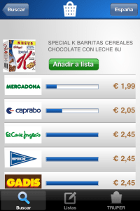 Y entonces… ¿de que va esto de comprar en modo cooperativo? Muy fácil, si no encuentras el producto con SuperTruper puedes ayudar al resto de los usuarios a ahorrar, haciendo una fotografía del producto con el móvil y rellenas los campos que te pide. Estarás dando una información valiosa y haciendo ahorrar a los demás en su cesta de la compra. También se te permite añadir tus productos a tus listas de la compra con un solo botón. Puedes crear tantas listas como quieras: la compra semanal, la de la celebración familiar,una cena especial con amigos… Y si quieres, comparte tus listas: envíalas a tus familiares o amigos, o ayuda al resto de la gente compartiendo tu buen hacer. Otra carácteristica que esta muy bien es que puedes comparar tus listas entre distintos supermercados, de forma que podrás saber de una tacada donde te resulta más barato comprar dicha lista, ponderando los distintos precios.