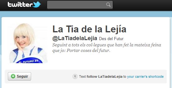 Viendo el panorama, me he dado cuenta que este importante personaje (fundamental en la historia del S.XXI) no ha pasado desapercibido para mucha gente, y ráudo y veloz, me he puesto a investigar sobre ella, hayando cosas tan curiosas como que tiene cuenta en Twitter: