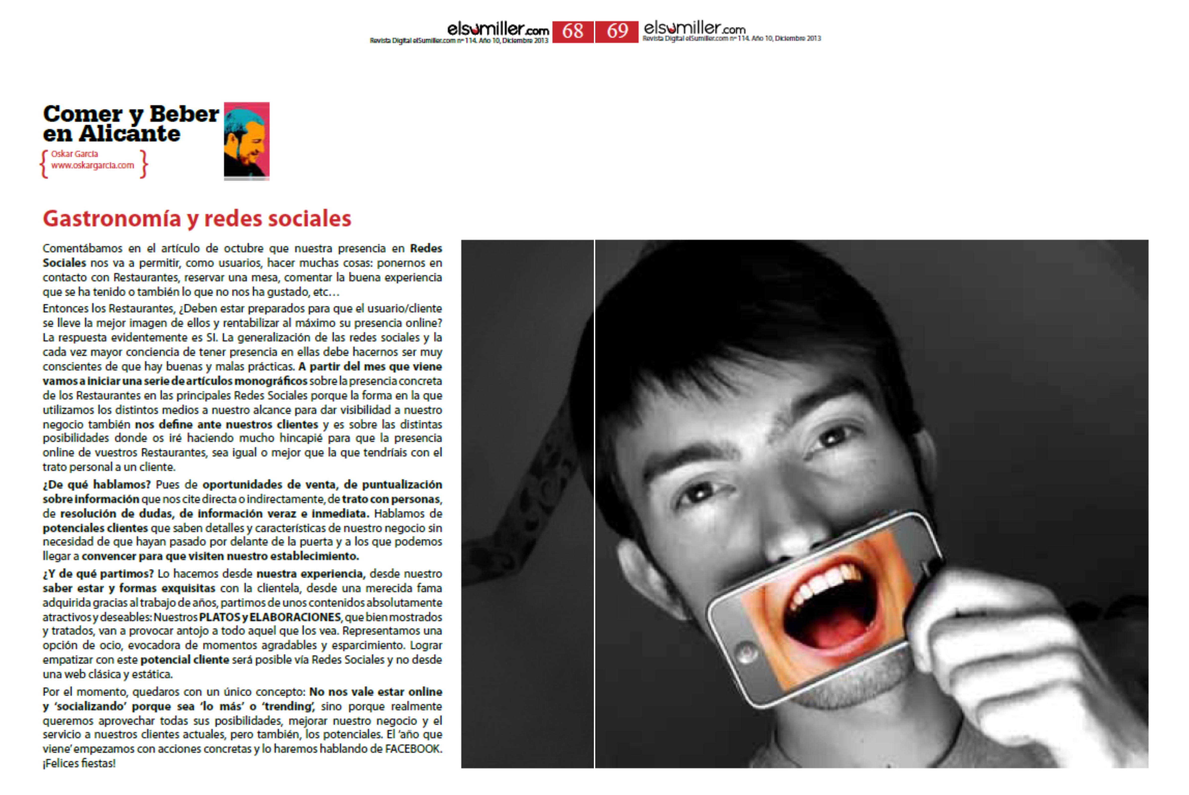Comentábamos en el artículo de noviembre que nuestra presencia en Redes Sociales nos va a permitir, como usuarios, hacer muchas cosas: Ponernos en contacto con Restaurantes, reservar una mesa, comentar la buena experiencia que se ha tenido o también lo que no nos ha gustado, etc…