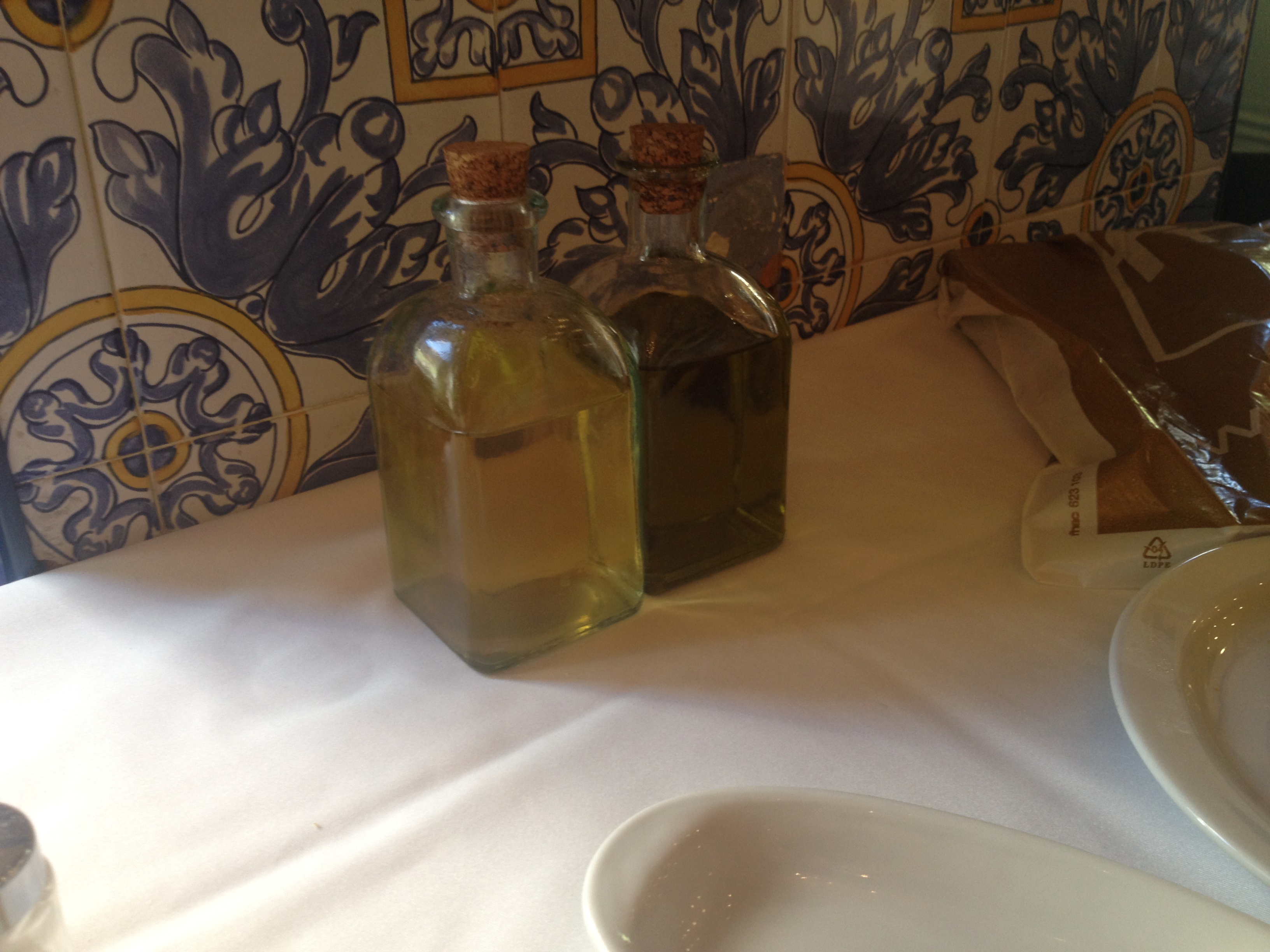 Bien, pues ni cortos ni perezosos y GPS en mano a las 2 como un clavo nos sentábamos en La Daniela para disfrutar de una merecida recompensa en forma de festín gastronómico. La Taberna tiene una imagen exterior muy agradable que refrenda por dentro. Decoración castiza, alicatado de época, muebles sobrios y en su conjunto, es mas o menos lo que uno espera encontrar en un establecimiento así, si bien también os digo que el ‘aire’ a franquicia reproducida en serie se palpa en el ambiente. Cuando nos sentamos, encontramos en mesa el primer detalle con el que ya empezábamos mal: Aceitera y Vinajera rellenables y no las preceptivas que indica la actual normativa.