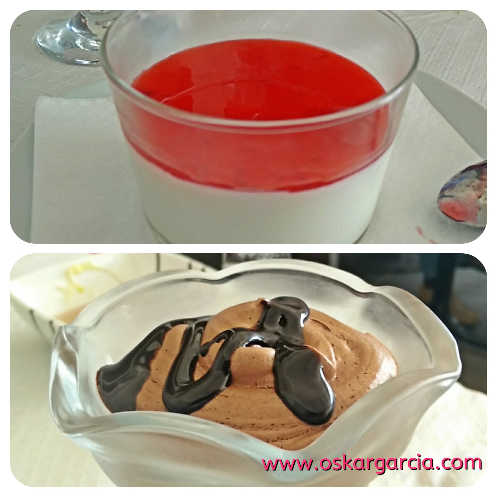 Llegado a este punto acabas hasta arriba pero si te apetece probar alguno de los postres incluidos, nosotros de entre la variedad como flan, mousse de limón, helados, tarta, etc… optamos por panacota y por una mousse de chocolate con leche. La panacota es casera y está deliciosa. Mira que es sencillo este postre pero cada vez que lo pruebo me sorprende mas y mas. El mousse también estaba delicioso.