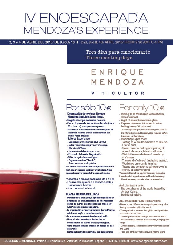 En fin, deseando que vuelva a llegar el mes de abril para repetir experiencia y seguir probando los magníficos vinos alicantinos que Mendoza pone a disposición popular durante la Enoescapada 😉