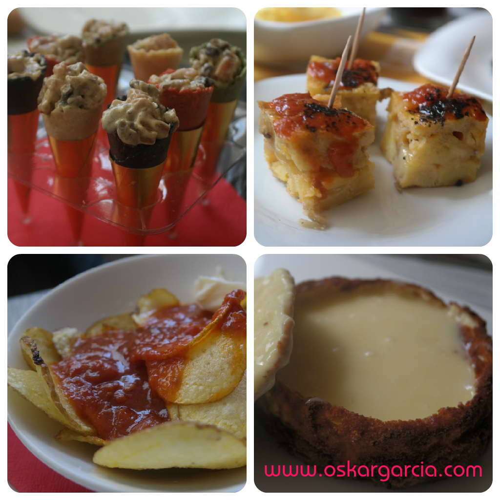Nivel de atención y detalle que no decayó en ningún momento de la comida y he de decir que conociendo a Vero y Toni, no es algo que hagan de forma excepcional, es algo de lo que realmente se preocupan y que cuidan, así consiguen que la sensación de estar en buenas manos que uno tiene desde que pone el primer pie en el establecimiento sea notable. Mención también para el magnifico equipo de sala que este sitio ha conseguido reunir: Gente trabajadora, detallista y además, se percibe muy buen rollo y piña como luego me corroboró Vero y Toni en la pequeña sobremesa que tuvimos. Me alegro de que esto sea así ya que tan importante como la cocina es el saber estar en sala y atender a los clientes. En el capítulo de comida íbamos abiertos a las opciones que quisieran proponernos o fueran surgiendo, sin nada prefijado. Eso sí, a los pequeños les encargamos dos raciones de arroz melosito y Vero nos sugirió el hacerles un a banda con esa textura… ¡Menudo acierto! Tan acierto como que terminamos los mayores pidiendo el mismo arroz para comer de lo que nos gustó. Además, acompañó la comida de los peques junto con nuestra cañas iniciales con unos pinchos de jugosa tortilla con salsa brava y unos divertidos conos tipo helado de pasta coloreada en distintos tonos como guiño a los mas pequeños rellenos de una salsa supreme con trocitos de setas que les encantó (y a los papis también porque estaban deliciosos). Como teníamos claro el plato principal, fuimos marchando los entrantes y estos fueron: fondue de camembert con confitura, sensacional. Se trata de rebozar varias veces una pieza entera de este tipo de queso y llevarlo el tiempo exacto a la freidora de forma que cuando llega a mesa, el personal de sala corta la tapa y el queso está calentito y con textura cremosa con lo que ir untando biscotes y coronarlos con un poco de confitura se convierte en un acto repetitivo contra el crono ya que el tiempo no juega a favor por ir endureciendo el queso al irse enfriando. En cualquier caso, no sobra nada del plato ya que aunque se quede frío, las partes fritas (tapa y paredes) están igualmente deliciosas.
