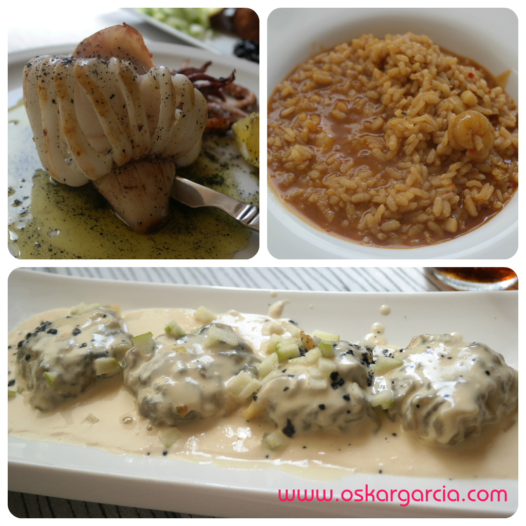 Tras los contundentes entrantes llegó a mesa el arroz, un meloso a banda (muy original) que previamente se le había servido a los peques y que nos había gustado mucho. La verdad, la evolución que ha tenido Vero con los arroces es digna de mención: Se propuso mejorar este importante capítulo en un restaurante al lado de la playa y vaya si lo ha conseguido. Nuestro arroz salio ‘teset’ como a mi me gusta, es decir, con el grano mas durito que blando, con un fondo de mar impecable, si bien yo lo noté carente de algo, quizá un punto extra de sal, pero fue una percepción únicamente mía porque al resto de los comensales les pareció perfecto, así que seguramente el que tiene el paladar ‘atrofiado’ soy yo (mas de lo habitual digo) :D. El arroz se hizo en caldero y se presentó en platos quijotescos que engañan bastante porque parece siempre que hay menos cantidad arroz de la que luego te sirven y salen raciones muy generosas.