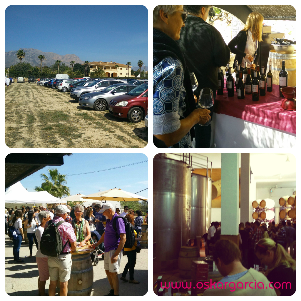 Como digo, fue un día especial donde el tiempo acompañó y donde, como siempre, lo pasamos genial. Destacar como dato muy positivo la enorme afluencia de gente del viernes (3.000 personas según comentaron) que dan una idea de la gran aceptación que tiene este evento y del importante poder turístico que genera en la zona ya que es una actividad inusual y que se torna en perfecto complemento al visitante que viene a pasar unos días por Benidorm, Altea, etc… Además, la bodega habilita unos extensos solares colindantes para que los vehículos puedan ir aparcando sin problema y los agentes de protección civil ayudan a regular el tránsito. En la parte de sugerencias y tras lo vivido este año, yo animaría a los organizadores a replantearse el número de barras existentes para servir a todos los asistentes (hay 3 y todas a la sombra para que las colas, de entre 6-8 minutos, se hagan mas llevaderas). Ciertamente elevarlas a 5 creo que podría suponer un cambio sustancial en la percepción del numeroso visitante. Otra cosa que observé ese mismo día es que a partir de las 14:15h la gente empezaba a mermar (lógicamente por ser hora de comer) así que para otro año puede ser un buen plan el comer primero y luego hacer la cata correspondiente de vinos ya que el horario permite la visita hasta las 16:00h.