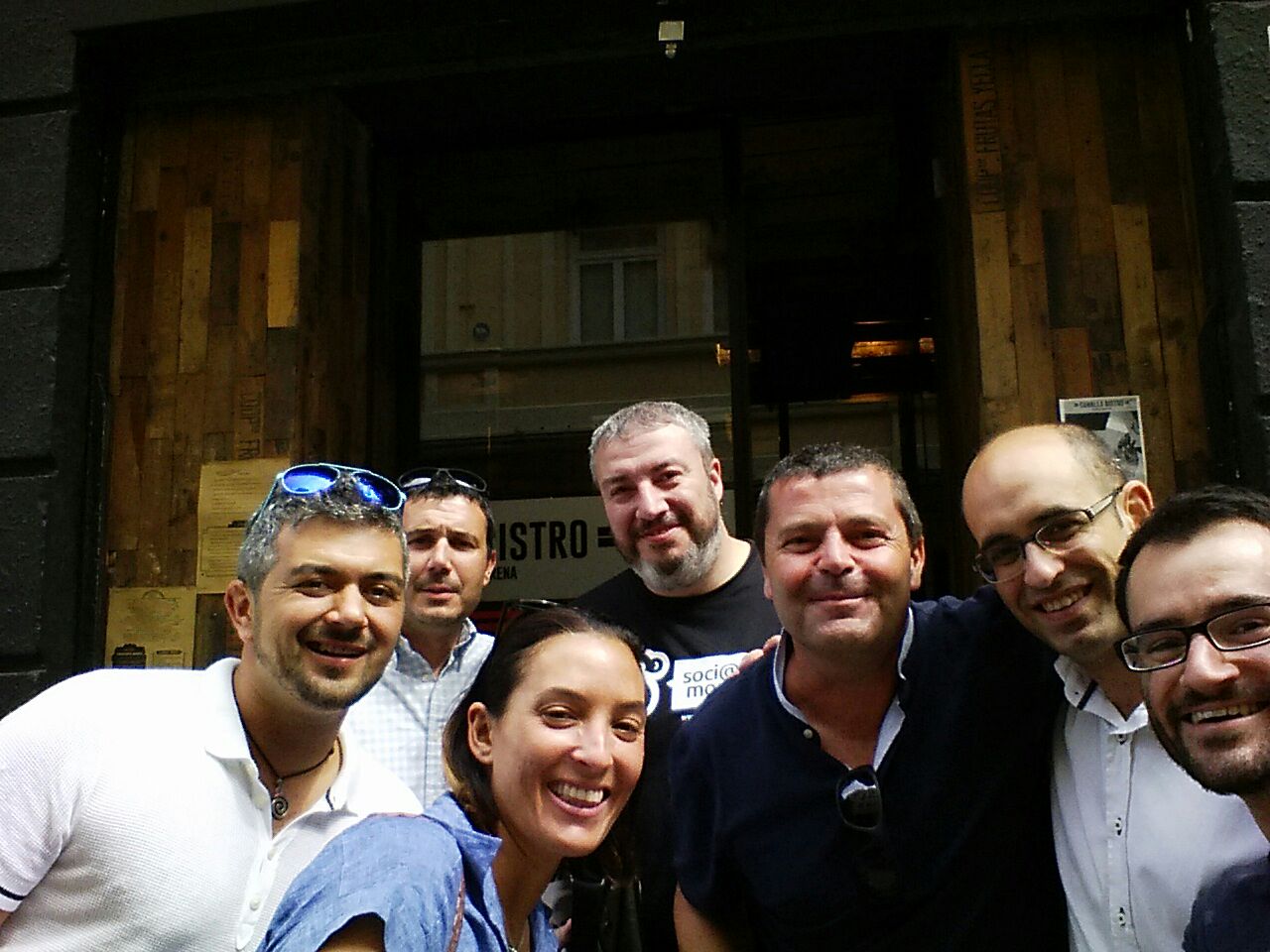 Conclusiones: Toda una experiencia gastronómica y lo mejor, muy atractiva en precio lo cual la hace doblemente interesante. Por poner algún pero, quizás los que sois muy comilones como yo os quedéis con la sensación de os ha faltado algún plato mas en el menú, pero sinceramente, esto va en línea con el momento y la percepción de cada uno. Por mi parte solo puedo recomendar encarecidamente la visita a este establecimiento pues es todo un ‘must’ y no creo que os defraude. De hecho, podéis ver las caras de satisfacción y felicidad que teníamos los afortunados comensales al salir de allí y creo que esta foto es el mejor de los resúmenes que se puede hacer de esta cita gastronómica 😉