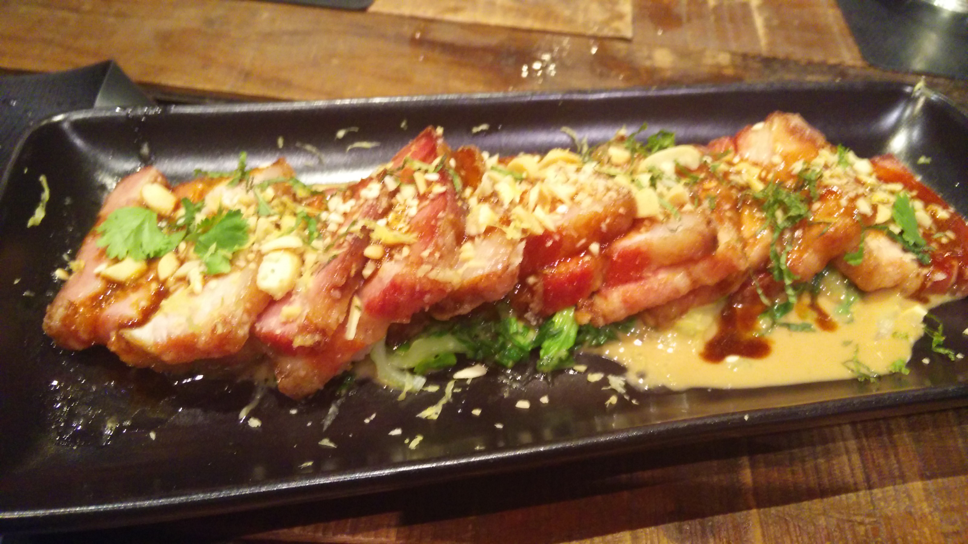 Panceta de cerdo asada con salsa hoisin, tatsoy y cacahuetes (para 3 personas)