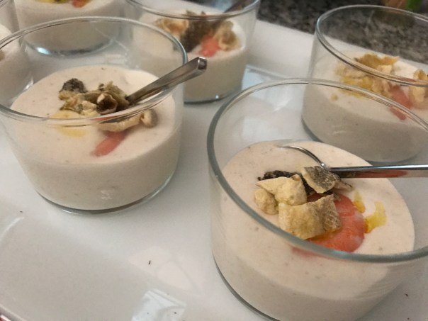 Esta es la primera thermo-receta que publico. Es la primera de muchas pero la idea es salirse un pelín del tiesto porque, si ya está inventada… ¿que aporto yo? Pues soy partidario de la irreverencia y de experimentar, así que me he propuesto hacer cosas distintas y variaciones a todo aquello que me vaya pareciendo sugerente y digno de ser compartido. Con esta idea nació el Ajoblanco de Coco, Langostino y Pieles de Mar, la de romper un poco la tónica del clasicismo y aportar un punto diferente a este veraniego y refrescante plato. Por fortuna, he podido contar con unos conejillos de indias de lujo que han sobrevivido, me han dado feedback y ya os anticipo de antemano que ha gustado mil 🙂