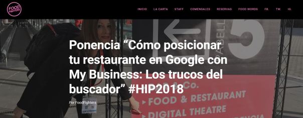 Ponencia “Cómo posicionar tu restaurante en Google con My Business: Los trucos del buscador” #HIP2018