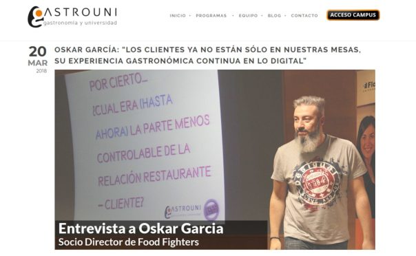 Adicionalmente y pinchando en este link o sobre la imagen de abajo, tenéis el acceso a su web y a la completa super entrevista completa. Sinceramente, me apasiona lo que hacemos y nuestras colaboraciones con Gastrouni junto con las reacciones y evolución de los alumnos nos convencen cada día mas de que podemos ir cambiando los puntos de vista para que el hostelero los aproveche a su favor. Espero que os guste 😉