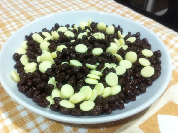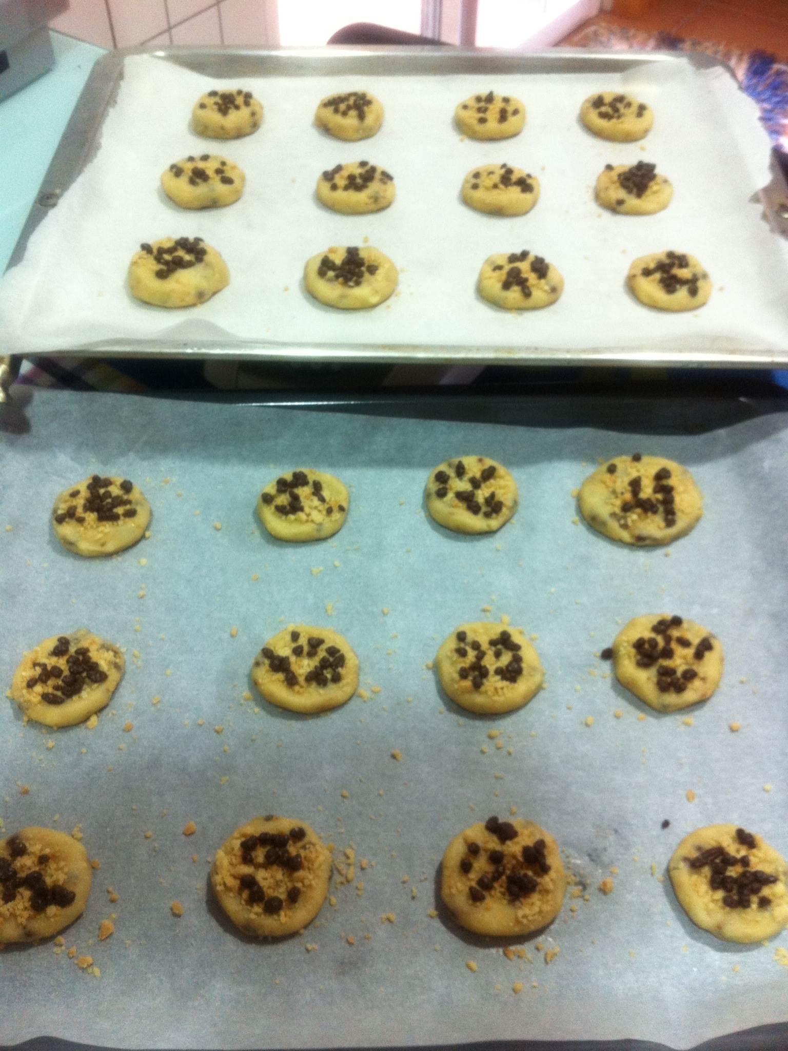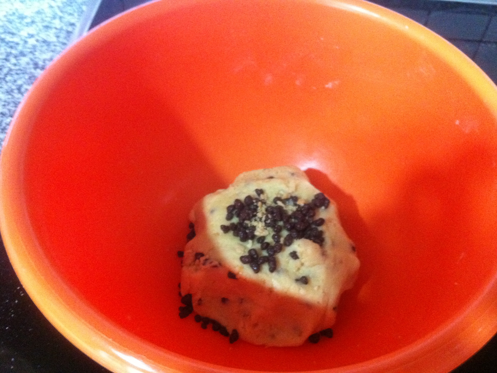 - Además, luego se el añaden los trocitos de masa de galletas y las pepitas de los chocolates.