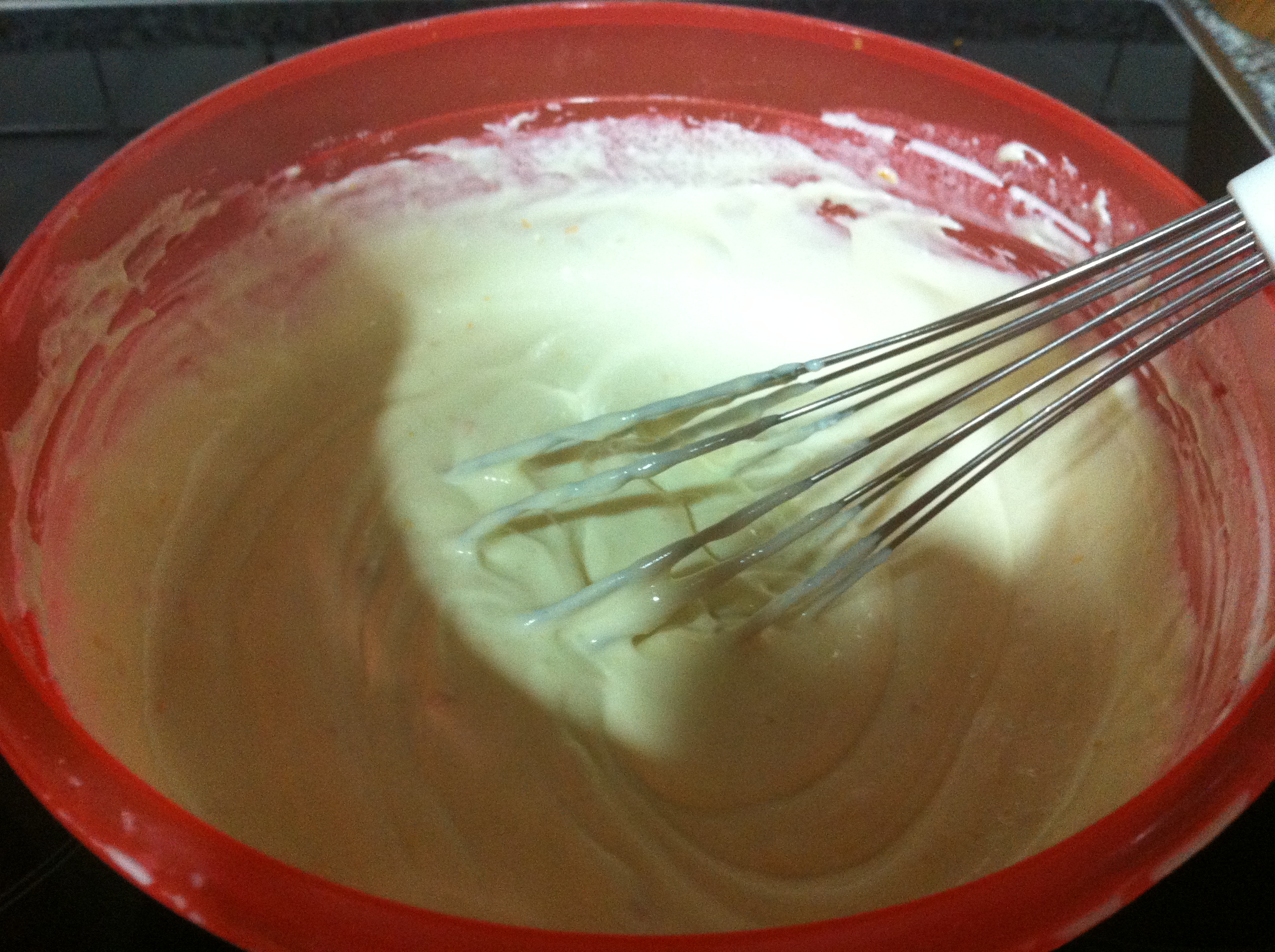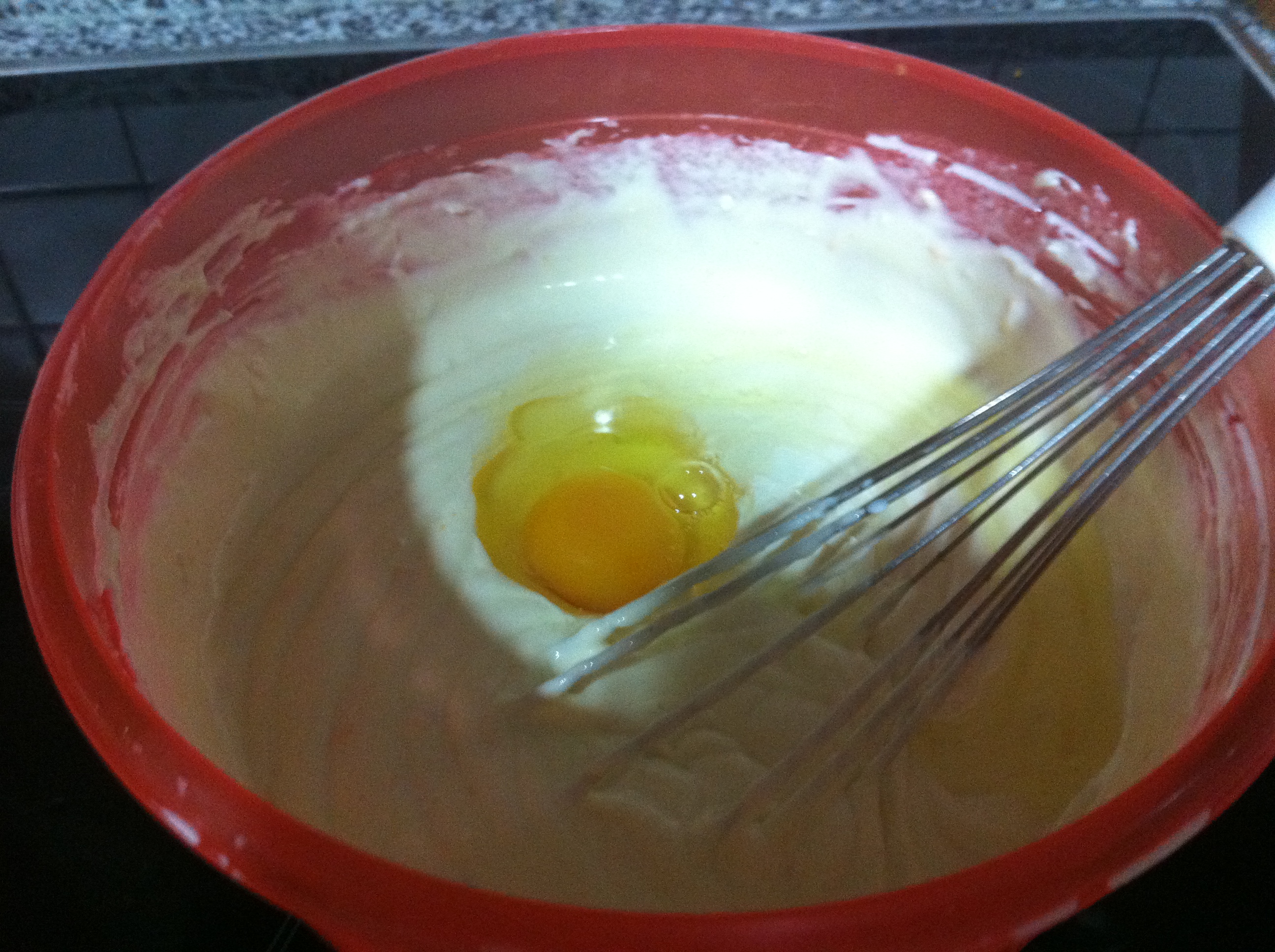 Batimos hasta obtener una mezcla que notemos muy ligada y es importante evitar el incorporar aire dentro de la misma tras el batido.