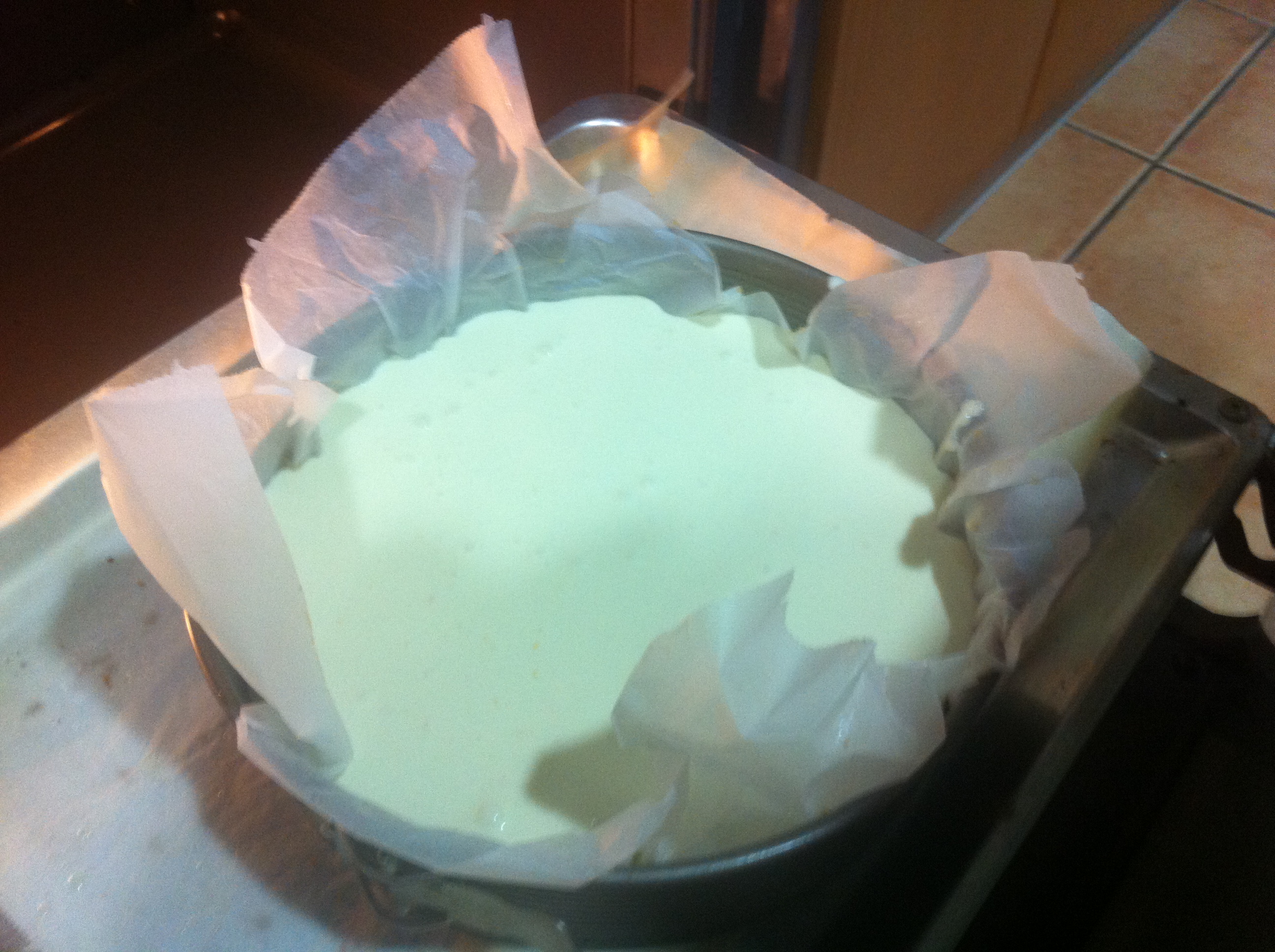 Añadimos el relleno al molde y horneamos a 150 ºC durante 1 hora y 20 minutos en modo calor de ventilador.