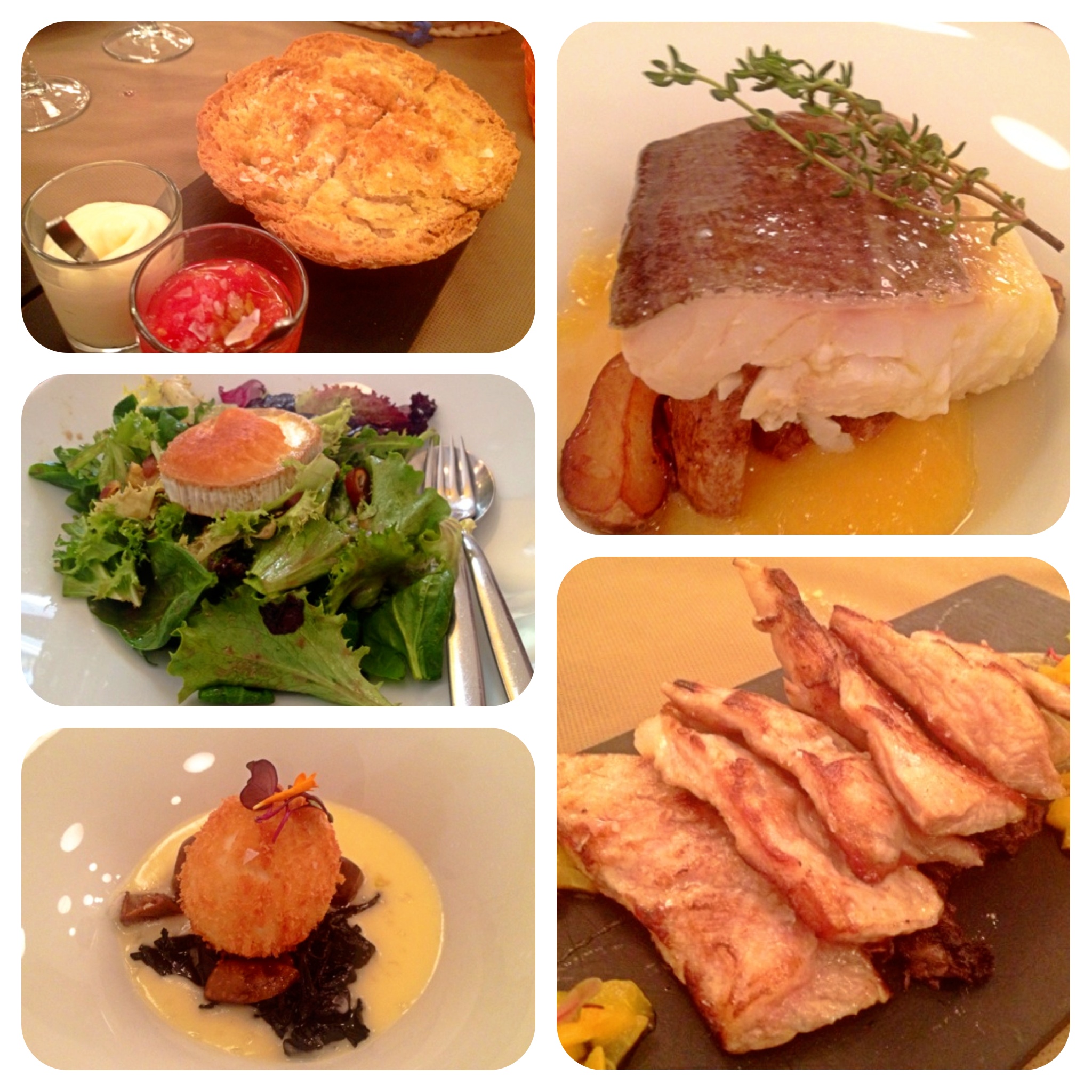 Como estamos muy a gusto y la tertulia se nos hace muy agradable, seguimos pidiendo y mi compañero esta vez se inclina por un Domaine Les Bois de Peyre del 2003 (otra pasada de vino) y acompañamos con un crêpe de pavo, queso y especias, presentado en tarrina (creo que ellos la llaman ‘ollita’, extraordinario), un poquito de foie de oca a la pimienta de sechuan recién molida (muy bueno, nada convencional y el único fallo a mi entender que lo sirvieron acompañado de los clásicos biscottes industriales tipo bimbo, algo que desmerece este foie), y dos quesos de los mas fuertes de la casa: Un Rochefort (buenísimo) y un Cantal con 1,5 años de maceración en cueva que resultó una bomba en el paladar y dejaba un picor muy agradable. El foie nos lo acompañan con mas confitura de frutas del bosque y 2 copitas de un vino alsaciano de uva gewurztraminer, ideal para este tipo de preparado.